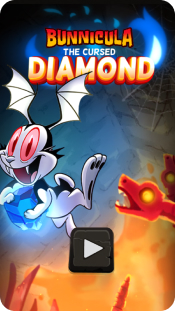 Bunnicula and the Cursed Diamond est un jeu d'évasion en 9 étapes dans lequel vous aidez Bunnicula à sortir du haut de la grotte avant que la lave montante ne l'atteigne. Utilisez le diamant bleu pour allumer les torches cachées sur votre chemin.